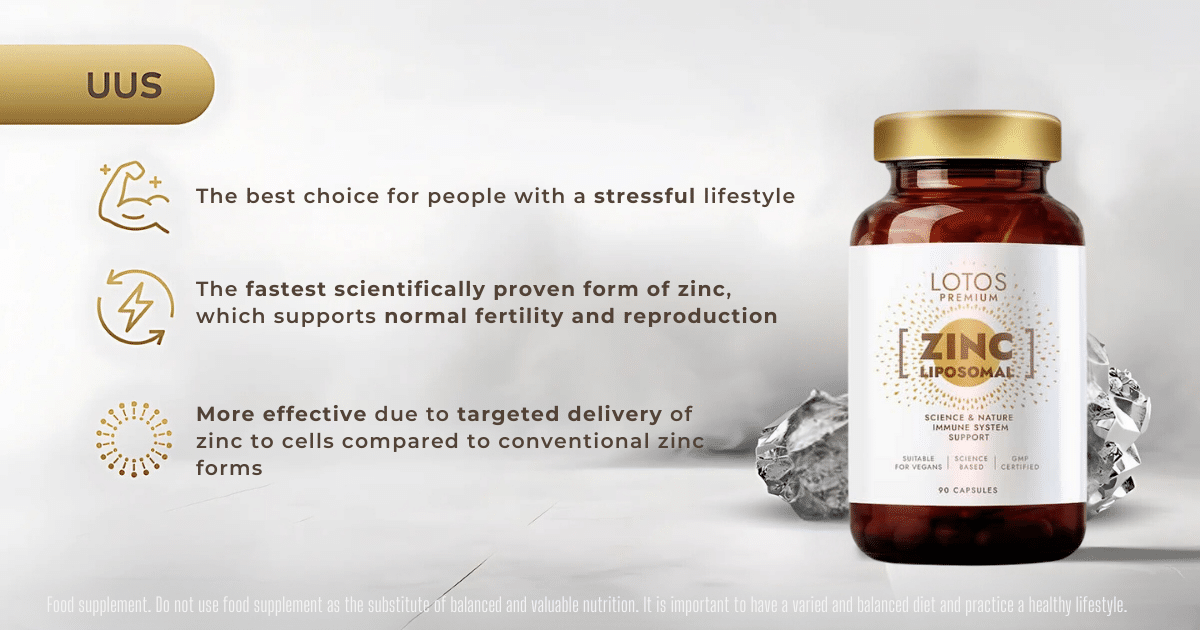 Liposomal ZINC containing zinc contributes to normal carbohydrate metabolism, normal cognitive function, normal function of the immune system. Zink also contributes to normal protein synthesis, normal fertility and reproduction. Zinc contributes to the maintenance of normal testosterone levels in the blood, as well as the maintenance of normal bones, hair and nails.