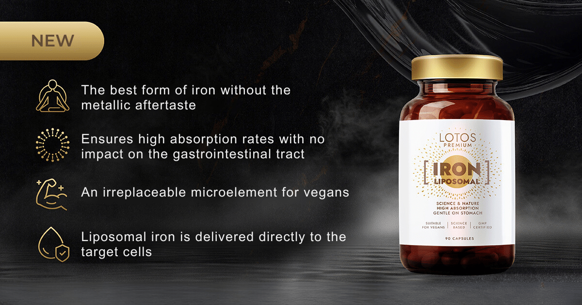LOTOS PREMIUM Liposomal Iron containing iron and vitamin B12 contribute to normal formation of red blood cells and normal function of the immune system, as well as contribute to the reduction of tiredness and fatigue. Iron contributes to normal formation of haemoglobin and normal oxygen transport in the body. Vitamin B12 contributes to normal energy-yielding metabolism and normal functioning of the nervous system.