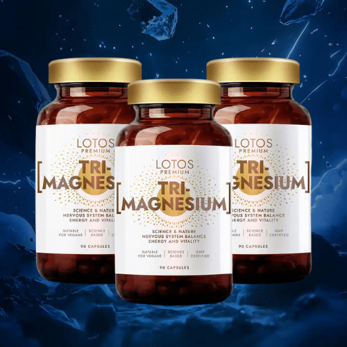 LOTOS PREMIUM Tri-Magnesium containing magnesium contributes to a reduction of tiredness and fatigue, to normal functioning of the nervous system, to normal muscle function, to normal protein synthesis and to normal energy-yielding metabolism.