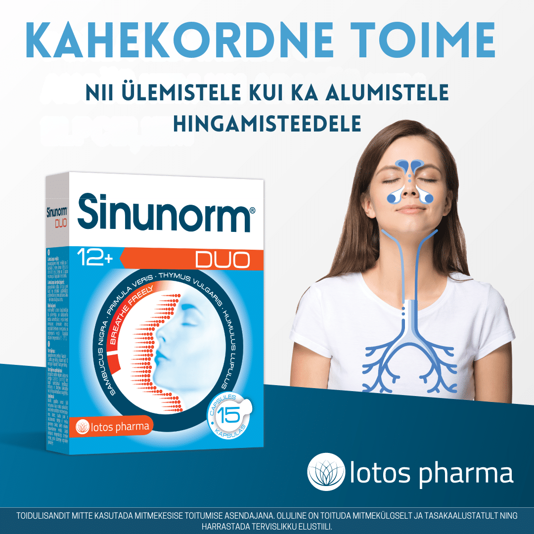 Kuigi nohu korral on oluline järgida õigeid hooldus- ja ennetusmeetodeid, nagu nina loputamine ja õige hingamistehnika, vajame vahel ka lisatoetust, et keha kiiremini taastuks ja tunneks end paremini. Siin tuleb appi Sinunorm DUO – toidulisand, mis ühendab endas mitmete taimeekstraktide, C-vitamiini ja tsingi kasulikud omadused.